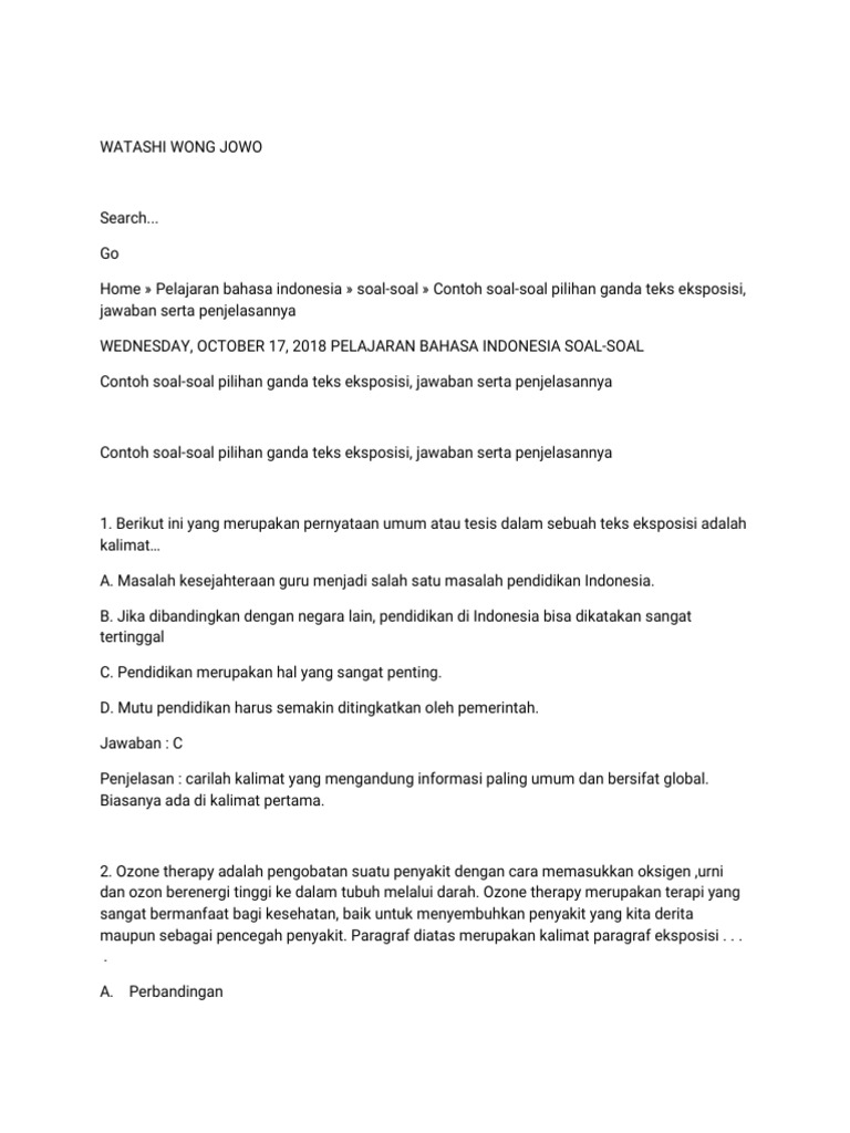 Soal Teks Eksposisi Kelas 8 Pilihan Ganda Dan Jawabannya / Contoh Soal Teks Eksposisi Kelas 8 Literatur : 20200702 pada soal soal yang kita bagikan pada kesempatan kali ini bukan lah soal pilihan ganda melainkan soal essay atau uraian pelajaran pkn tentang demokrasi dan jawabannya.